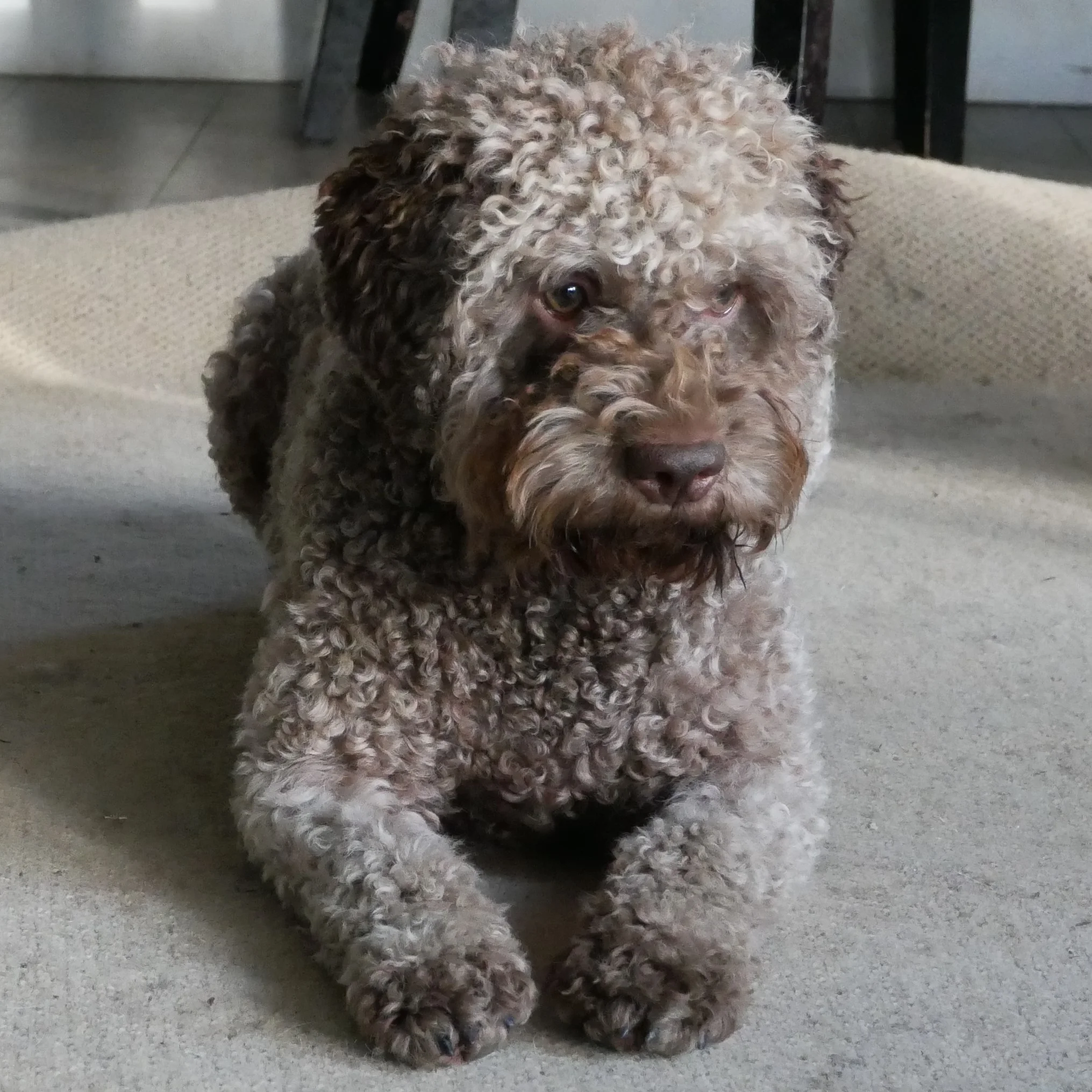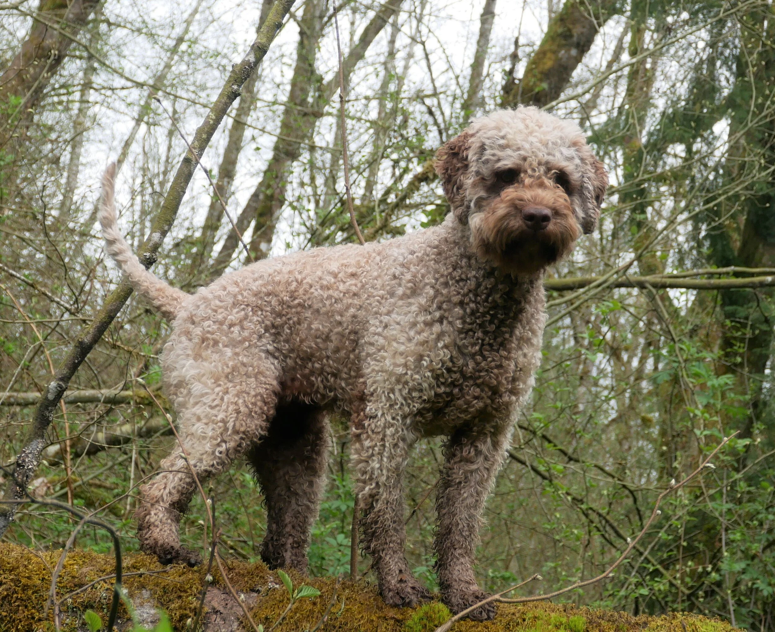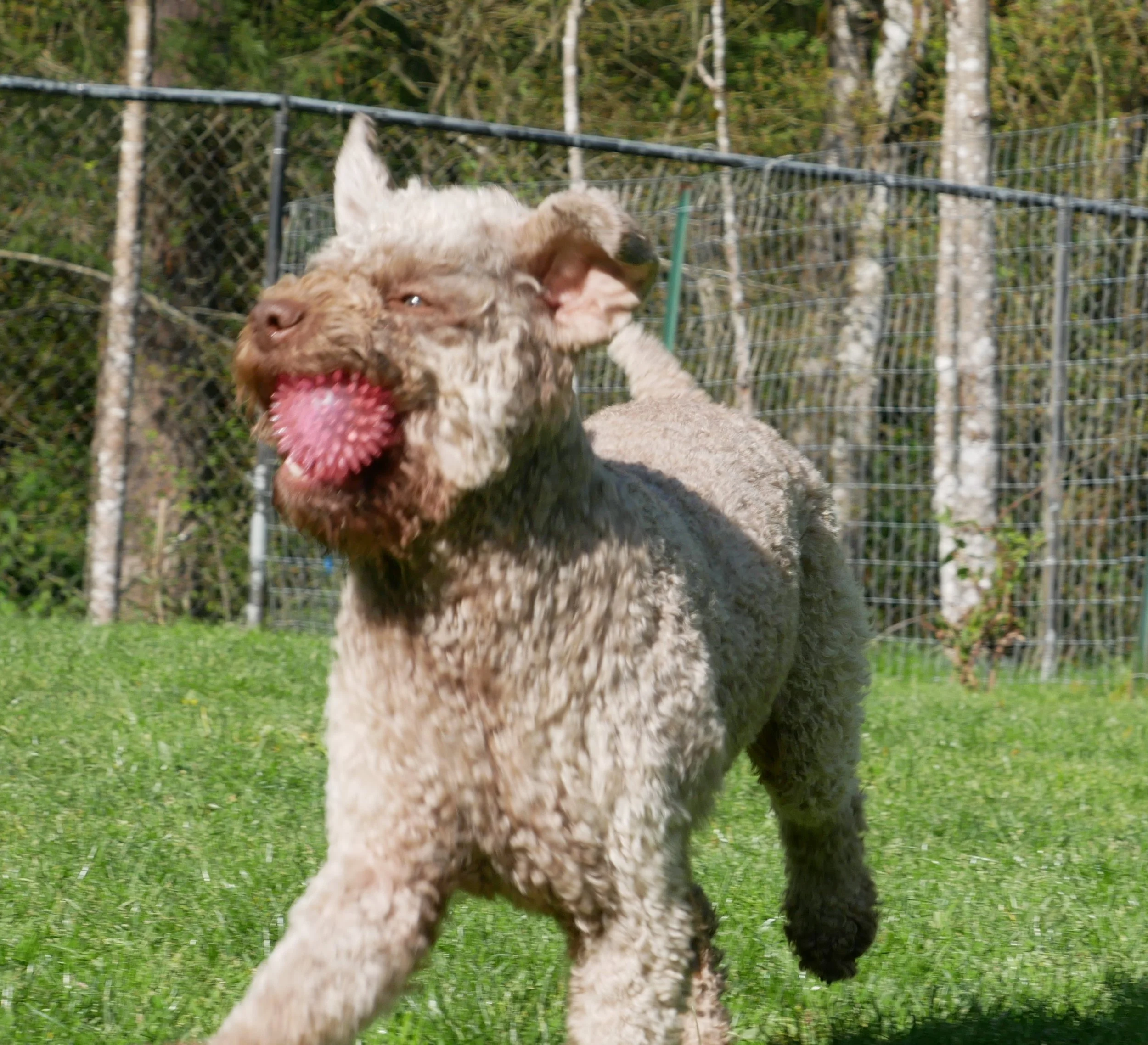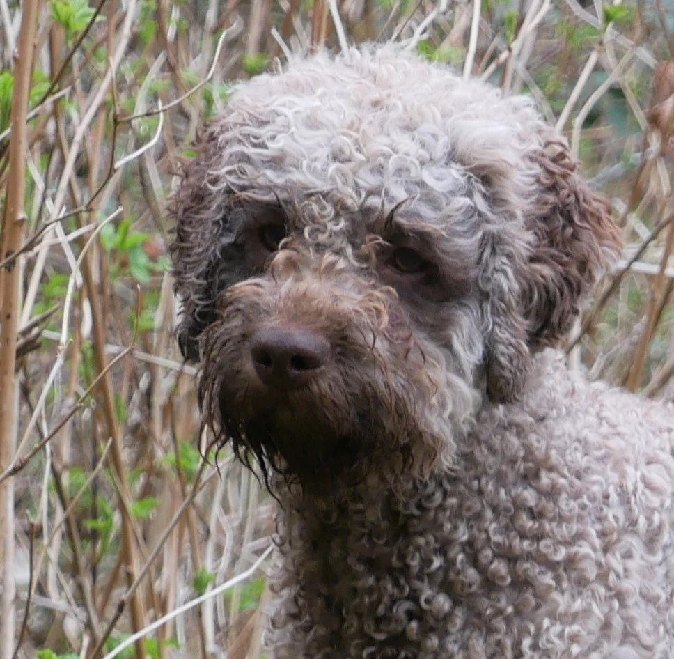Della was born in Poland December 30th, 2017 and came to us in April. Della has beautiful hazelnut brown coat that is already making nice curls. She has inquisitive green eyes that shine with attention and intelligence. She is outgoing, cheerful and affectionate little girl with endless energy and willingness to learn. She loves to play with ball, swims like a fish and generally absolutely fascinated with water, regardless if it is lake or our creek or just a puddle.