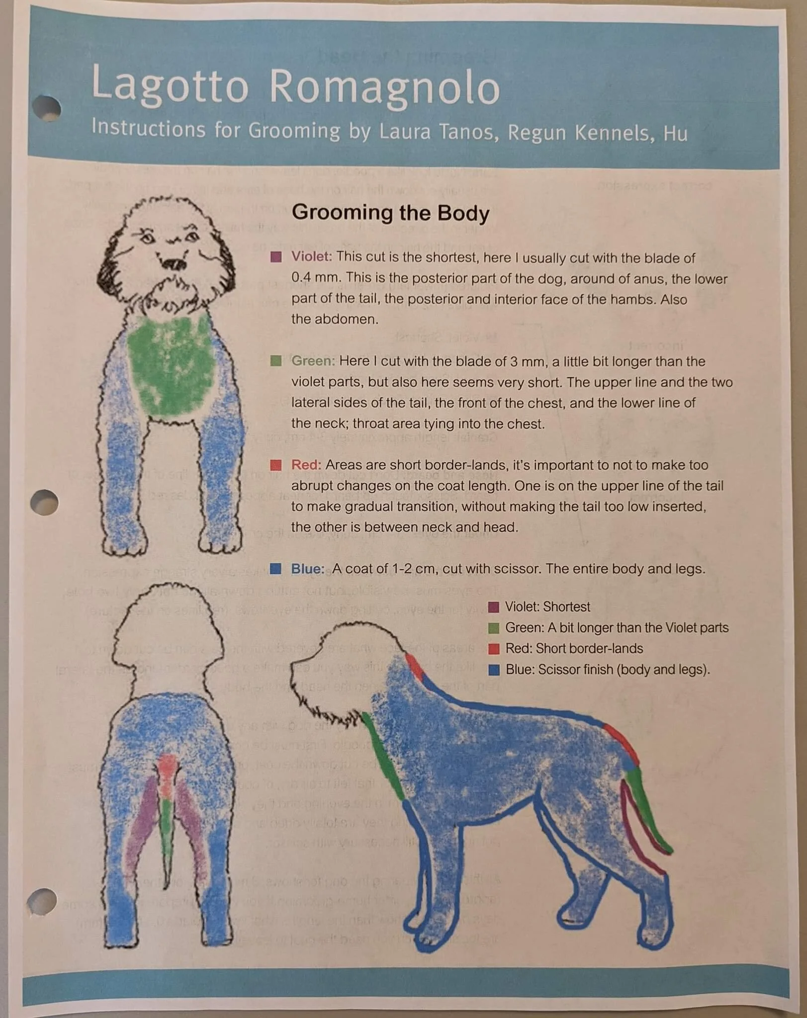 The Lagotto Romagnolo is fairly low-maintenance for a double coated breed. They have curly, non-shedding hair that needs to be clipped or scissored depending on a style you like. I have multiple videos available on YouTube and you are most welcome to watch them.