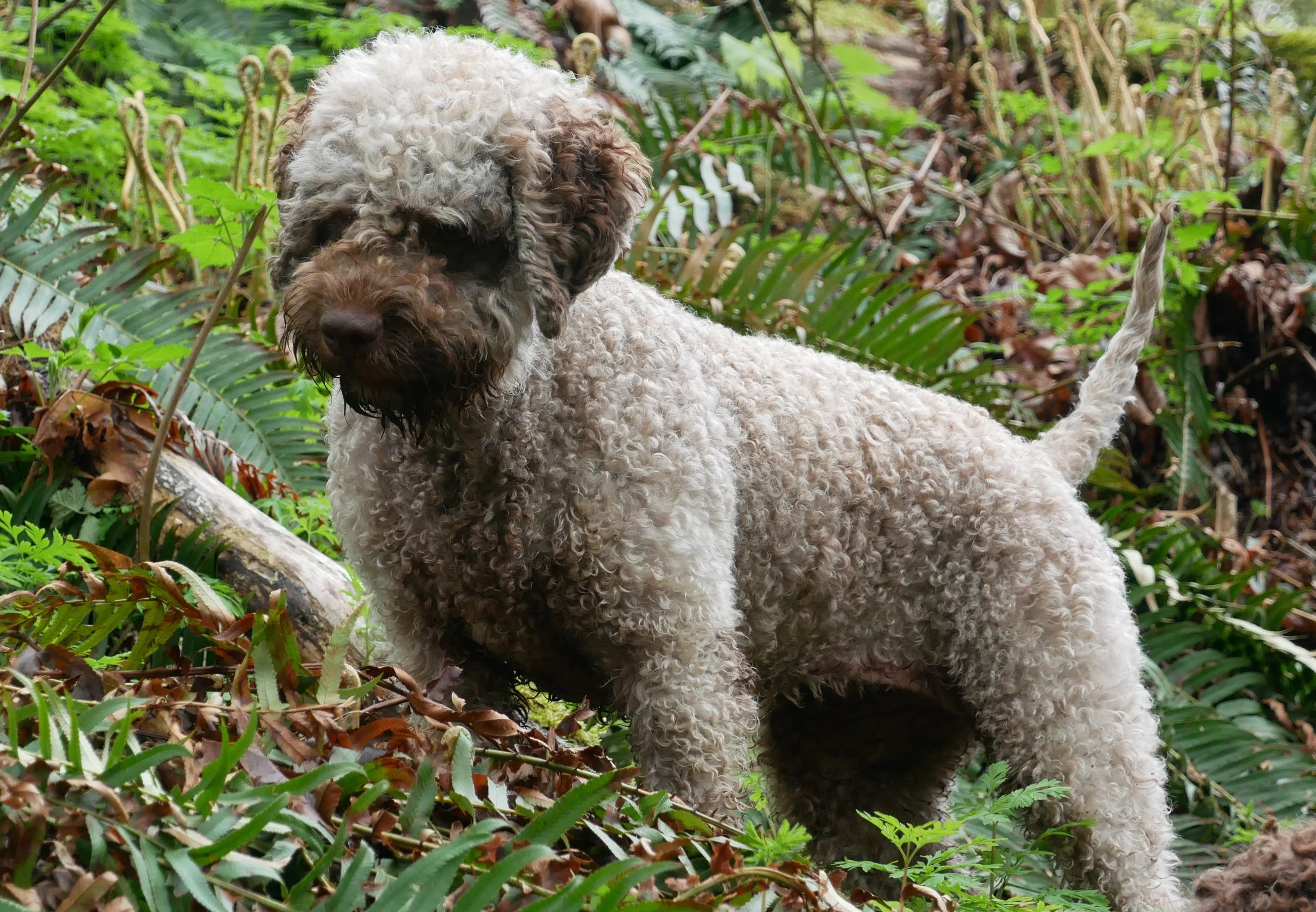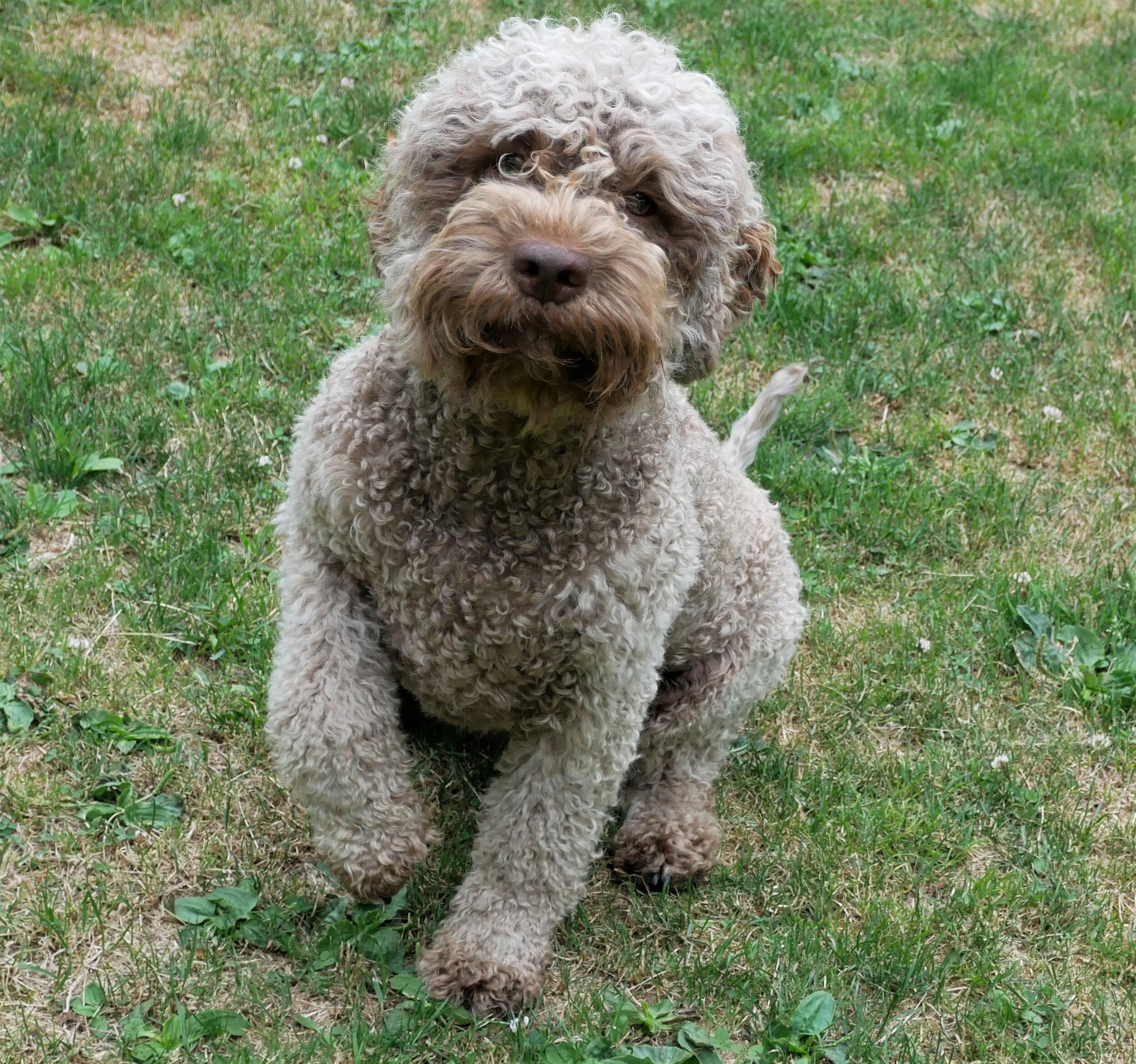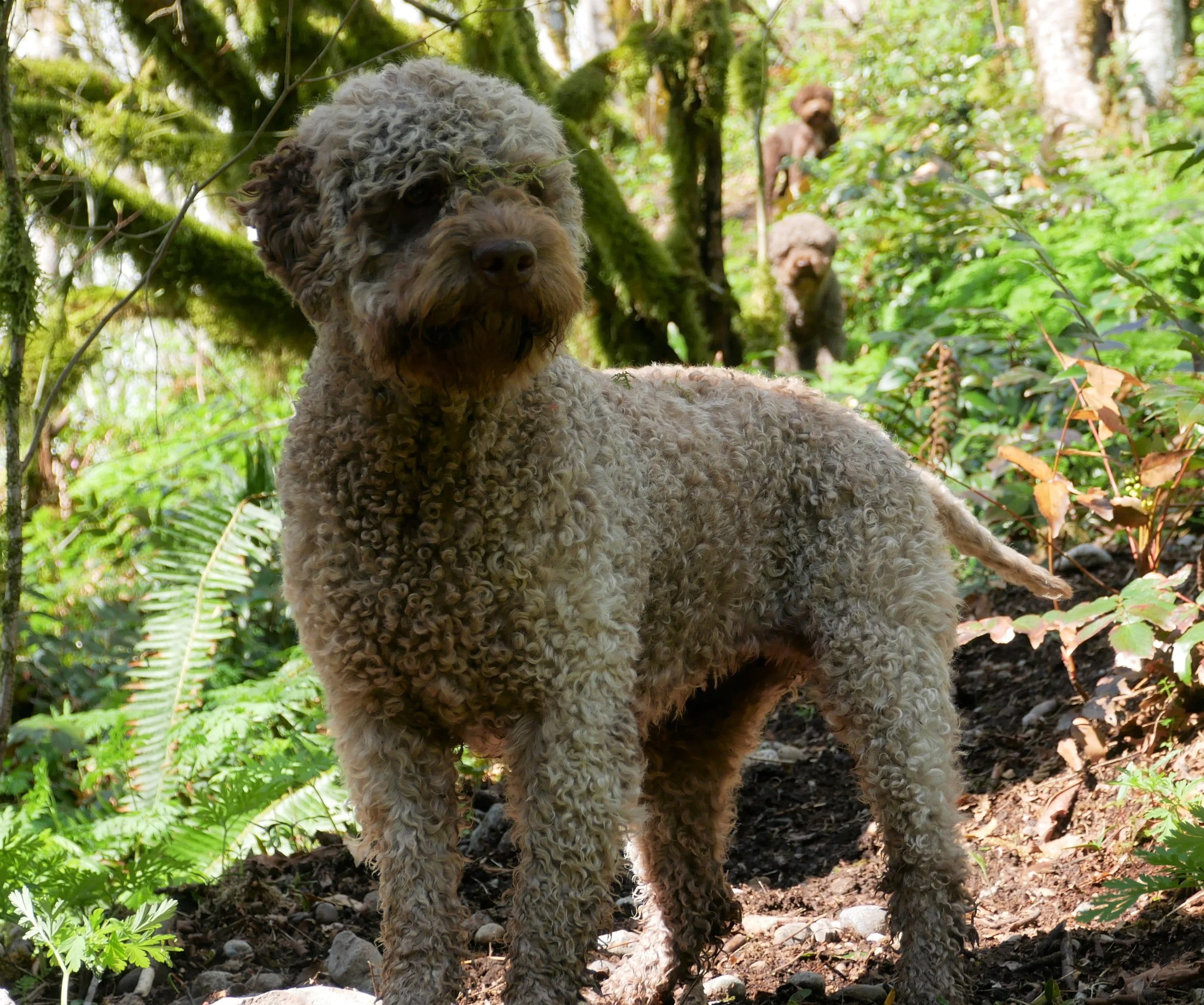 Della was born in Poland December 30th, 2017 and came to us in April. Della has beautiful hazelnut brown coat that is already making nice curls. She has inquisitive green eyes that shine with attention and intelligence. She is outgoing, cheerful and affectionate little girl with endless energy and willingness to learn. She loves to play with ball, swims like a fish and generally absolutely fascinated with water, regardless if it is lake or our creek or just a puddle.