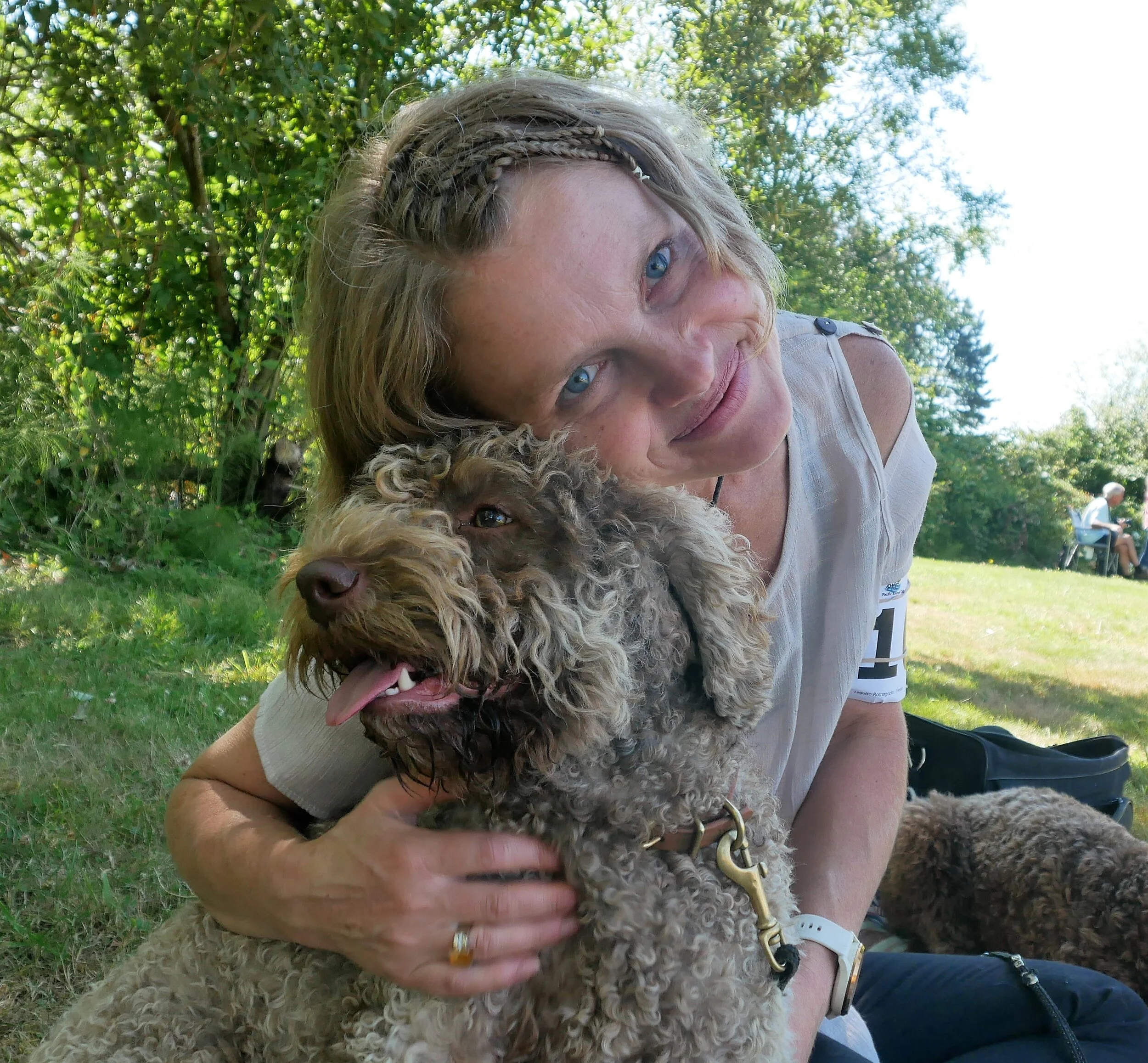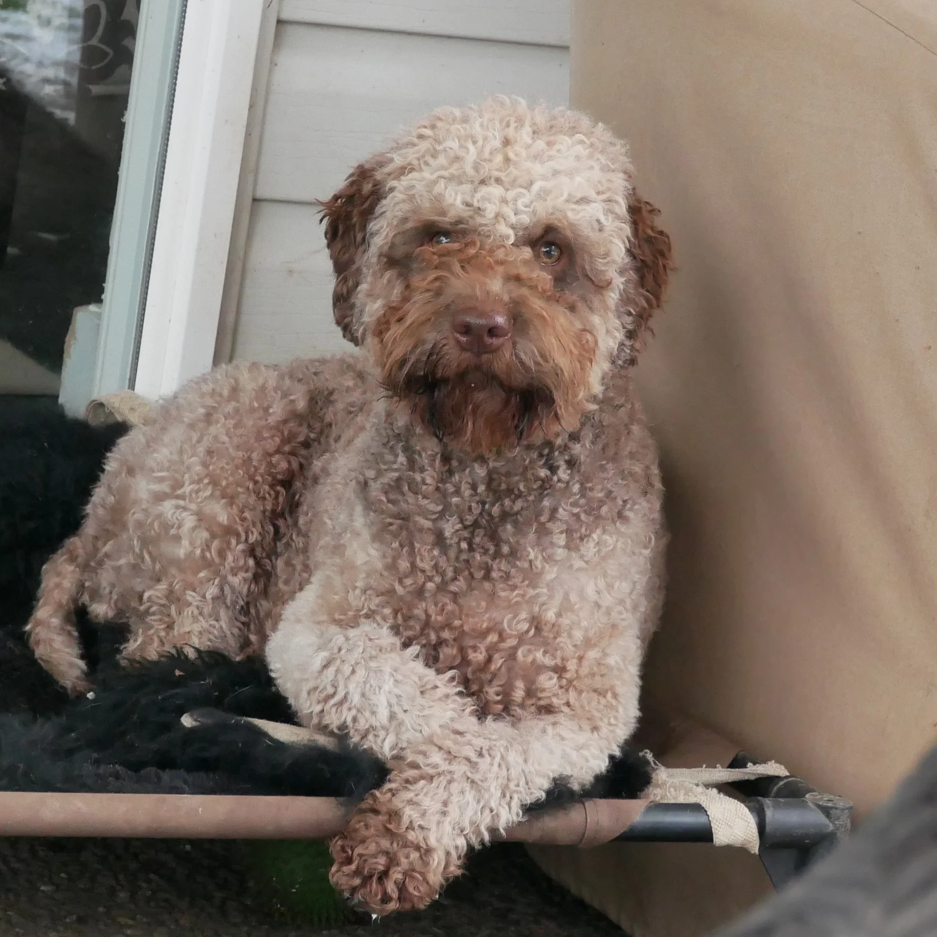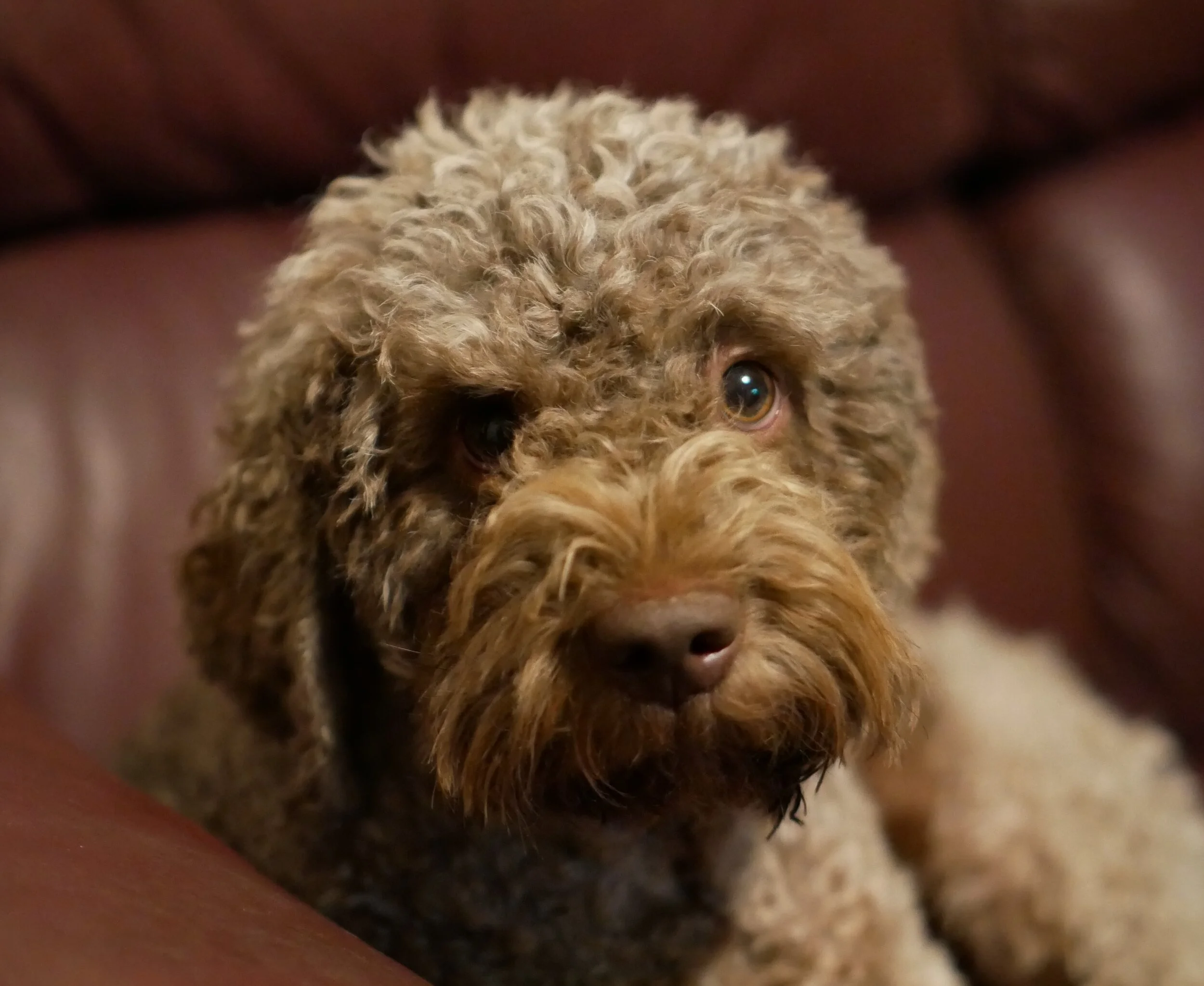 Della was born in Poland December 30th, 2017 and came to us in April. Della has beautiful hazelnut brown coat that is already making nice curls. She has inquisitive green eyes that shine with attention and intelligence. She is outgoing, cheerful and affectionate little girl with endless energy and willingness to learn. She loves to play with ball, swims like a fish and generally absolutely fascinated with water, regardless if it is lake or our creek or just a puddle.